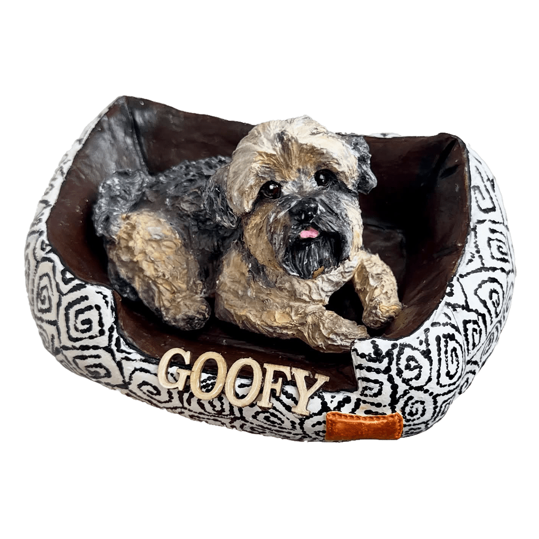 Las figuras personalizadas incluyen una escultura hecha completamente a mano en porcelana fría, basada en fotografías que el cliente nos proporciona. Nos enfocamos en reflejar cada detalle importante de la mascota: expresión, pelaje, colores y postura más característica para lograr una réplica emocionalmente significativa.